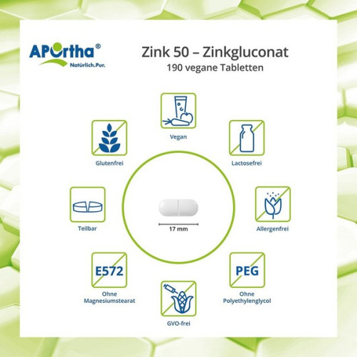 Sestavine: izomalt, cinkov glukonat 43,71%, sredstvo proti strjevanju: rižev ekstrakt, sredstvo za stiskanje: magnezijev karbonat, sredstvo proti strjevanju: strjena maščoba repičnega olja.