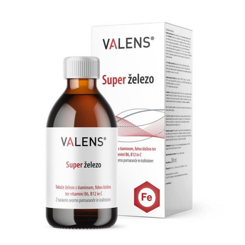Edinstveno prehransko dopolnilo s patentirano obliko železa Ferrochel®, ki se odlično absorbira, je nežnejšega okusa in ne povzroča prebavnih težav. Izdelek je obogaten z izbranimi vitamini, ki podpirajo delovanje železa in skrbijo za njegov maksimalen izkoristek. Valens Super železo je posebej priporočljivo za ženske v vseh starostnih obdobjih, otroke, mladostnike in vegane. Tekočina ima za razliko od podobnih izdelkov na trgu prijeten okus in ne povzroča »kovinskega« okusa.